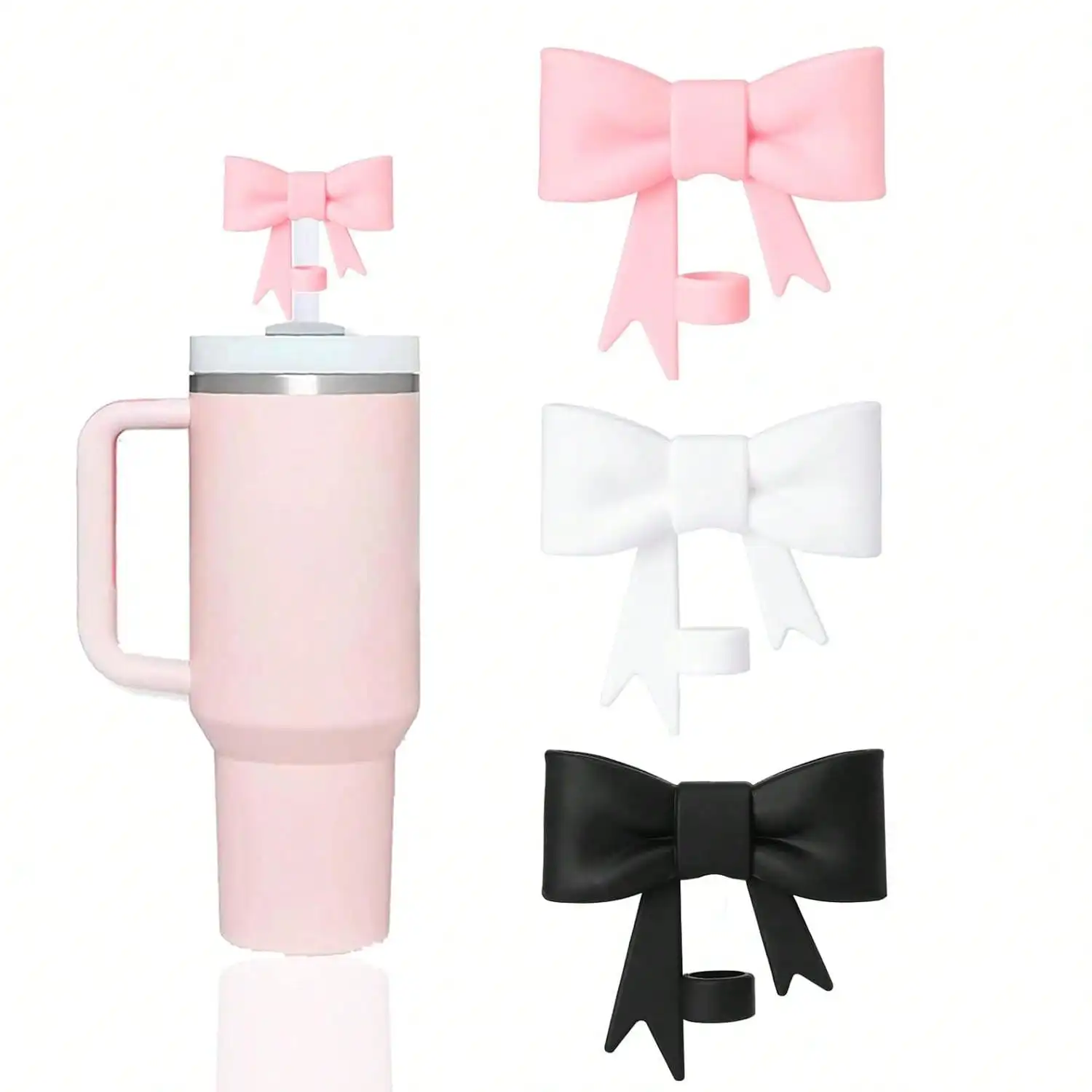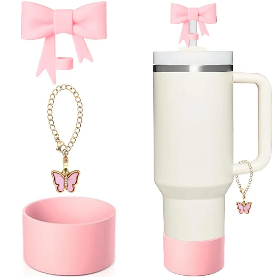 أضيفي لمسة أنيقة وحماية إضافية لكوبك المفضل مع أغطية الشفاطات المزخرفة بشكل فيونكة، المصممة خصيصًا لتناسب أكواب Stanley.